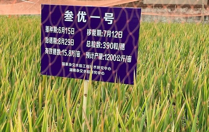 据人民日报客户端报道,此次测产验收是我国第三代杂交水稻首次专家测产验收,对于评估第三代杂交水稻产量具有重要意义。22日上午的专家评议会形成以下评议意见:G3-1S/亲89、G3-1S/亲183、G3-1S/亲19等组合于6月14-16日播种,7月5-12日移栽,表现株型优良、茎秆粗壮、耐肥抗倒,分蘖力强、穗大粒多、结实率高、籽粒充实饱满,后期转色好、不早衰。其中,G3-1S/亲89(叁优一号)经取样考种:平均每亩有效穗数15.8万穗,每穗总粒数390.0粒,总颖花数达到6000万/亩。对衡南县云集镇示范的新组合G3-1S/亲19进行机收测产,第1丘实收面积468.48平方米,实收毛谷882.8公斤;第2丘实收面积711.52平方米,实收毛谷1363.0公斤;按照标准含水量13.5%折算,分别折合亩产1034.4公斤、1058.3公斤,平均亩产1046.3公斤。专家组认为:第三代杂交晚稻新组合表现优势强,产量有重大突破。建议国家及相关单位给予大力支持,加快推动产业化进程。在湖南杂交水稻研究中心进行的第三代杂交水稻考察与测产专家评议会上,袁隆平院士介绍,第三代杂交水稻是利用普通隐性核雄性不育系为母本,以常规品种、品系为父本配制而成的新型杂交水稻。第三代杂交水稻不育系不仅兼有三系法不育系育性稳定和两系法不育系配组自由的优点,同时又克服了三系不育系配组受局限和两系不育系繁殖、制种存在风险的缺点,是水稻杂种优势利用的理想途径。