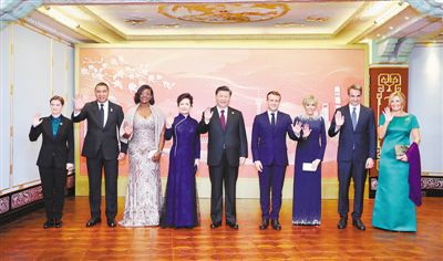 晚6时许,法国总统马克龙夫妇、牙买加总理霍尔尼斯夫妇、希腊总理米佐塔基斯夫妇、塞尔维亚总理布尔纳比奇等外方贵宾陆续抵达。习近平和彭丽媛同他们亲切交流并合影留念。