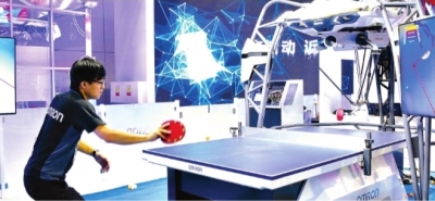 11月4日,工作人员在进博会欧姆龙自动化(中国)有限公司展台测试打乒乓球的机器人 新华社发