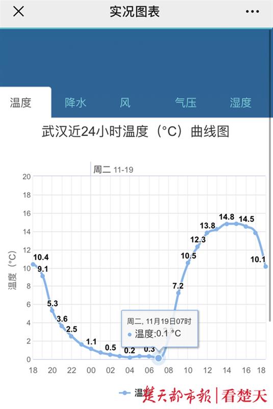 强冷空气已撤离,为何本轮降温的最低谷在昨晨?因为天空放晴,夜间没有云系保温,所以产生辐射降温,比如武汉今日凌晨2点至昨晨7点,气温都在0.1℃-0.5℃。
