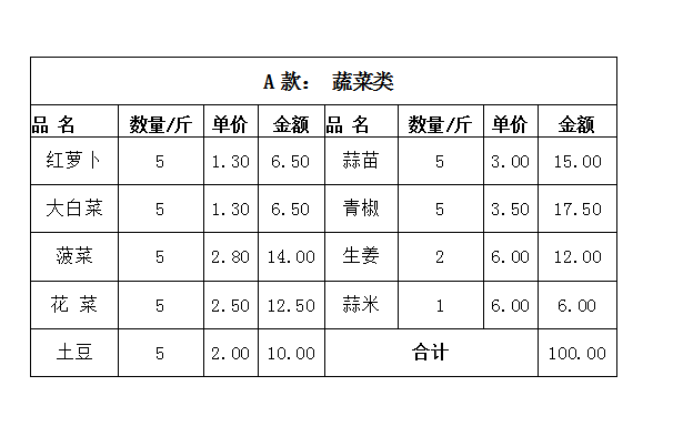 为保证惠及更多市民,蔬菜按份来进行配送,定价100元/份