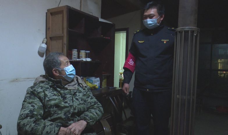 退役军人陈小三是市城管局协管员,他在这值守了40多天。当晚他要去给小区刘爹爹送菜。他介绍说刘爹爹今年70岁了身患残疾,因为疫情子女都不在身边,他还要照顾90岁的老父亲。陈小三就经常上门帮助买菜、买药。刘爹爹说,“这小三阿,真是蛮细心,比我孩子照顾的都好,要不是他我不晓得这段时间怎么过”