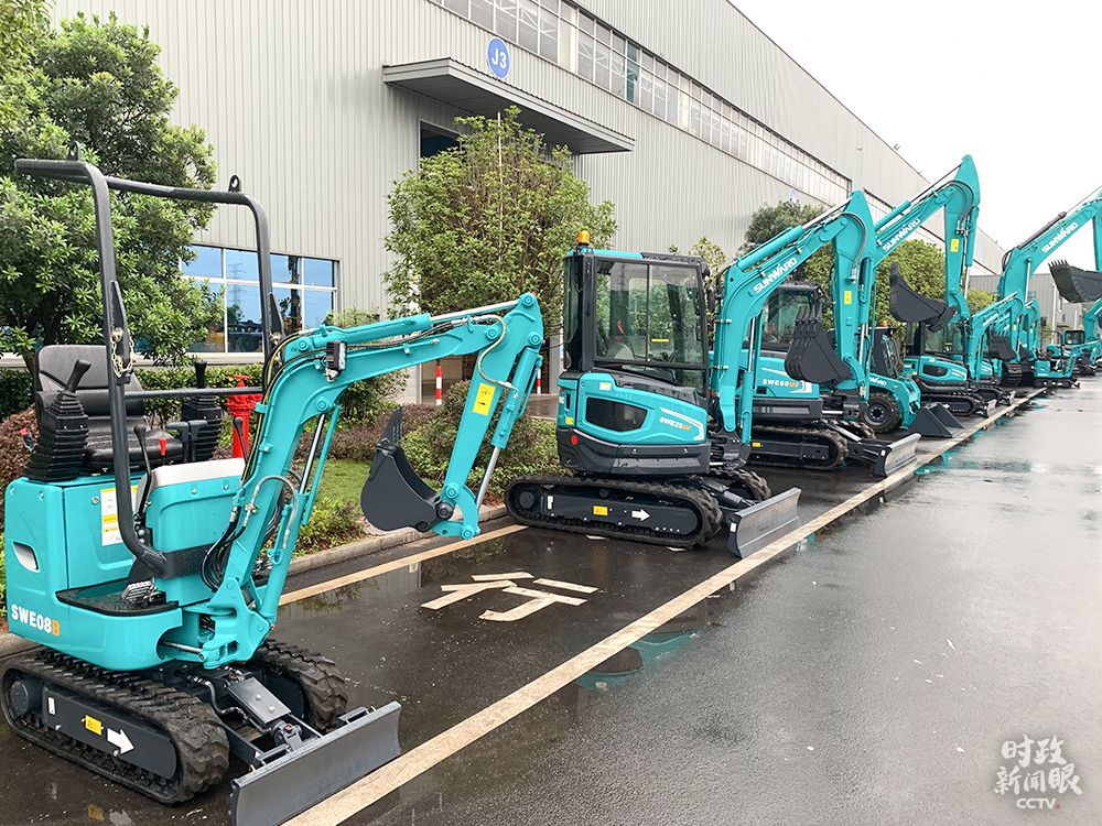 △这是不同型号的微型挖掘机,特点是动臂可偏转,底盘可伸缩,适合城市改造、农田水利等小规模项目。(总台央视记者章猛拍摄)