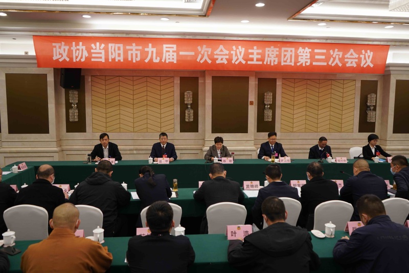 本网讯(政协报道组)11月10日,中国人民政治协商会议当阳市第九届委员会第一次会议举行主席团第三次会议。市政协党组书记、主席团常务主席苏琼主持会议,常务主席尹万明、雷平、杨兴中、陈国涛,大会秘书长王君莉出席会议。