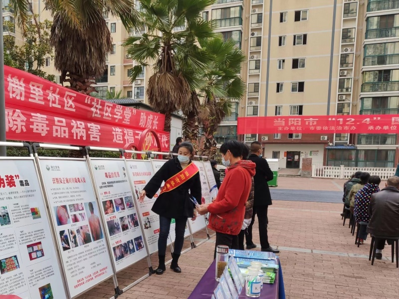 活动当天,居民参加活动的热情高涨,一大早便陆陆续续地来到活动现场等候,气氛活跃。活动现场还设置了“反电信诈骗”、禁毒知识、民法典知识多块宣传展板,并悬挂有禁毒防毒横幅,法治宣传氛围浓厚。