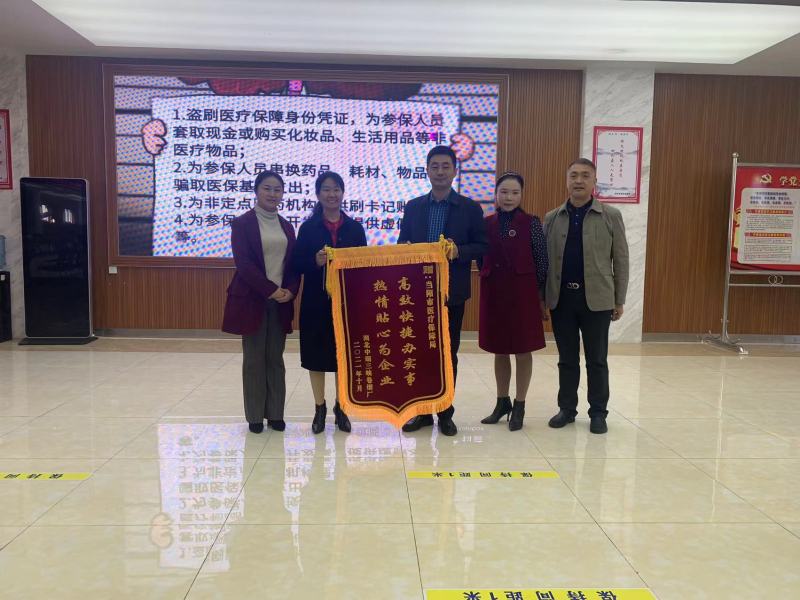 本网讯(邓怡、徐玥、童敏)11月18日,湖北中烟三峡卷烟厂的相关负责人来到我市医保局,送来一面“高效快捷办实事,热情贴心为企业”的锦旗,对真诚为企业服务、解决企业实际困难的市医保局工作人员表达感谢。