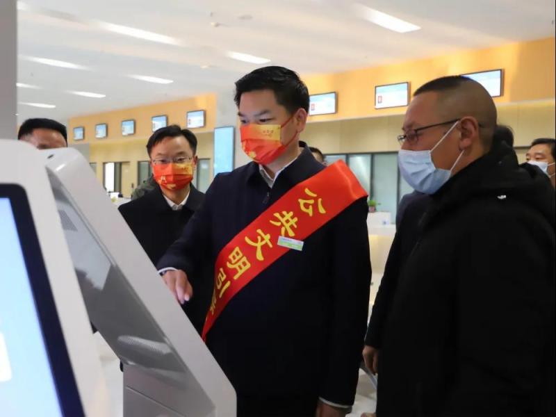 本网讯(邓怡)12月31日,市委书记刘传钢来到新启用的市民之家,以市民之家“帮代办”工作人员的身份,为湖北涵迪再生资源公司办理“五证同发”业务。