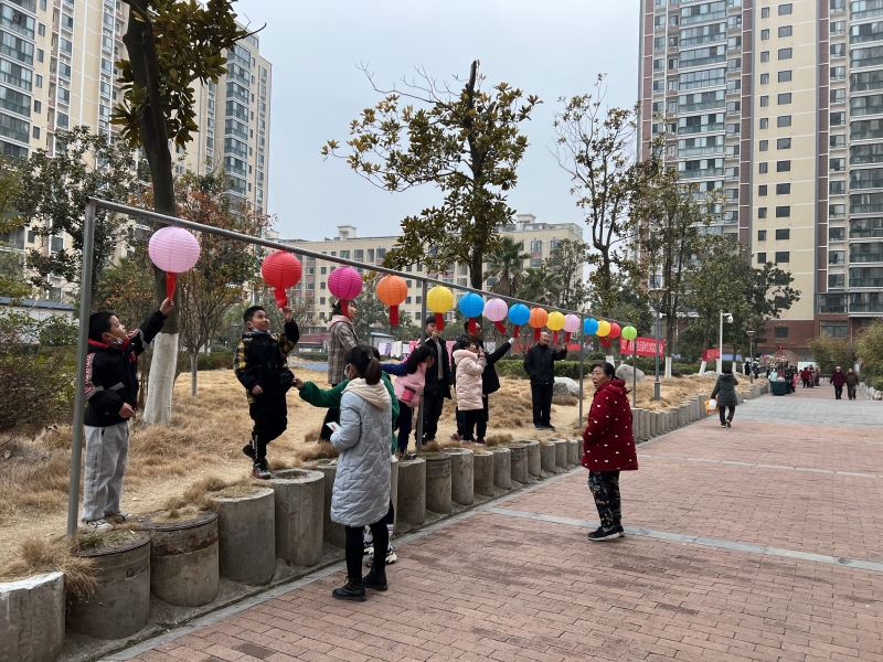 活动现场,专业舞狮团队进行表演,迅速将现场气氛带向高潮。随后,一百串五彩的灯笼高高挂起,居民们在迎风飘扬的灯谜下穿梭、猜谜,将自己猜出谜底的谜面取出,交给现场的志愿者核验答案并兑换纪念品,活动现场处处洋溢着浓浓的文化气息和邻里之情。