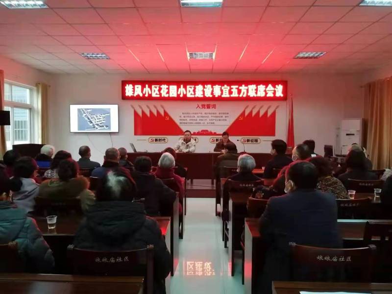 本网讯(刘忠莲、唐国超)近日,玉泉街道娘娘庙社区组织雄风小区居民、党员代表、包联单位代表等召开雄风小区、花园小区建设事宜五方联席会议,群策群力共建宜居家园,同心同德打造和谐邻里。