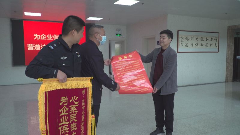 本网讯(谭昊、杨超)3月30日,当阳市建投水务集团有限公司负责人将一面锦旗和一封感谢信送到市公安局,向公安民警雷霆破案为企业换回经济损失表示感谢。
