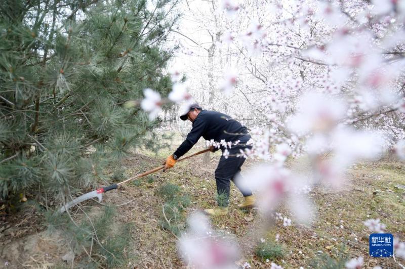 工作人员在雄安新区千年秀林修剪树木(3月29日摄)。新华社记者 骆学峰 摄
