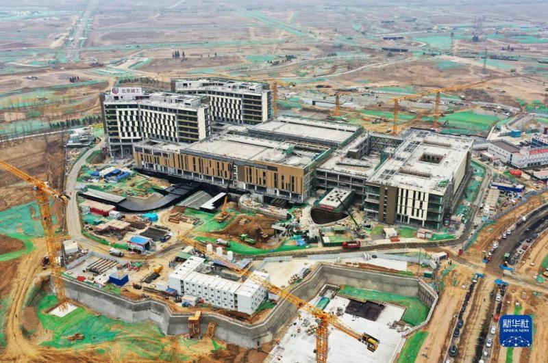 这是3月29日拍摄的雄安新区首都医科大学宣武医院雄安院区项目建设施工现场(无人机照片)。新华社记者 朱旭东 摄