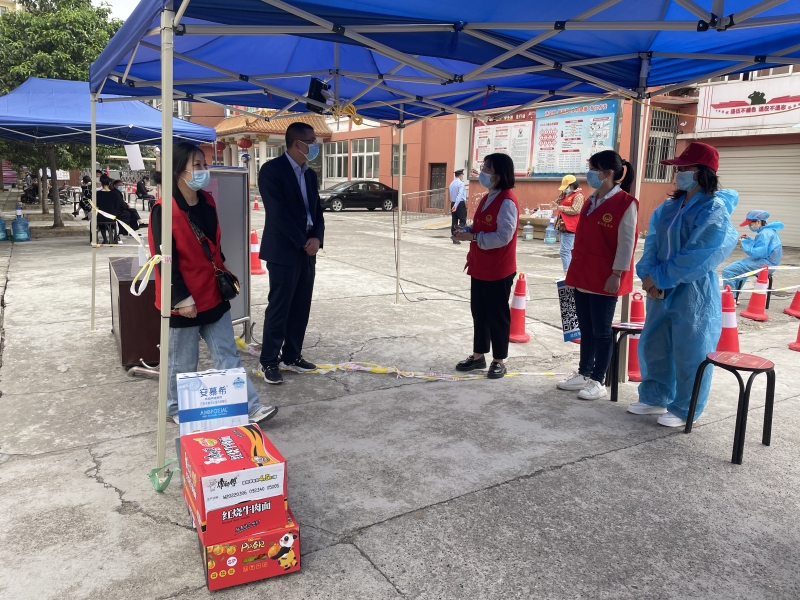 各银行组织人员了解一线核酸检测工作情况,并为他们送去矿泉水、牛奶、方便面等生活物资和消毒液、口罩等防疫物资,对一线工作人员不畏辛苦、冲锋在前、无私奉献、服务人民的职业操守和工作精神表达了崇高的敬意,确保工作不断、节奏不乱,顺利完成区域核酸检测工作。