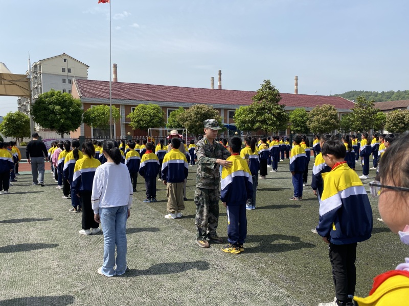 本网讯(周乔)4月18日,当阳桥小学特邀驻当阳某部冯昱人教官对全校600余名师生进行国防教育。
