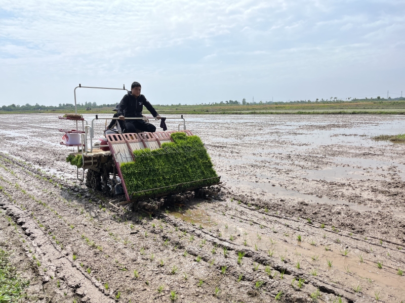 “为解决传统插秧劳动强度大、插秧时节人工紧张等问题,为粮食规模化种植、高质量生产及丰产增收打下基础,河溶镇采用‘合作社+农户’的农业产业化模式,由河溶镇晶穗水稻专业合作社采用机械化耕作、农田托管等方式,提供机耕、育秧、栽插、收割、烘干等一条龙服务,通过农业生产社会化托管服务,助力早稻粮食生产大丰收。”河溶镇农业农村办公室主任蒋军介绍道。