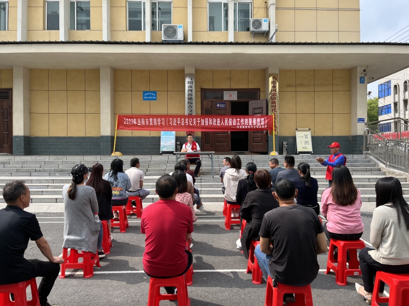 本网讯(岳芷欣)5月23日,河溶镇新时代文明实践所理论宣讲志愿服务队在河溶镇文化广场开展贯彻学习习近平总书记关于加强和改进人民信访工作的重要思想理论宣讲活动。