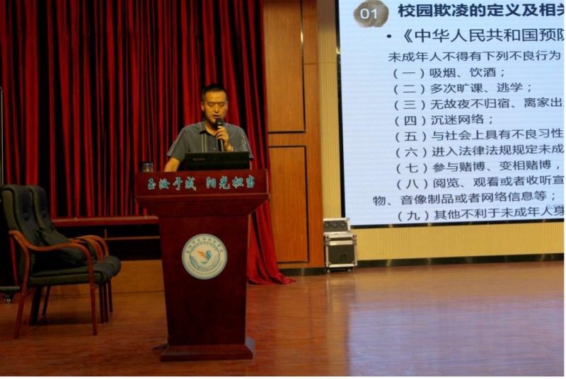 讲座中,法律援助律师以“校园欺凌”、“迷途少年”为关键词,以《未成年人保护法》、《刑法修正案》等法律条文为支撑,就青少年校园欺凌现象的心理机制、发生路径、介入方法、法律后果等重点内容进行讲解。