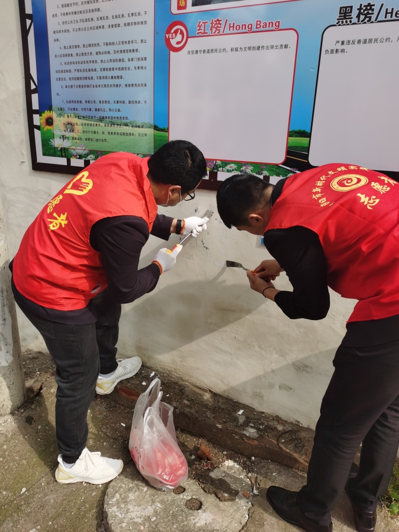 活动中,志愿者们自带镰刀、铲子、扫帚等工具,分工协作、配合有序。大家对包联小区背街小巷、公共场所等地杂草、垃圾进行清理,并对墙面、电线杆等乱张贴小广告进行清除。
