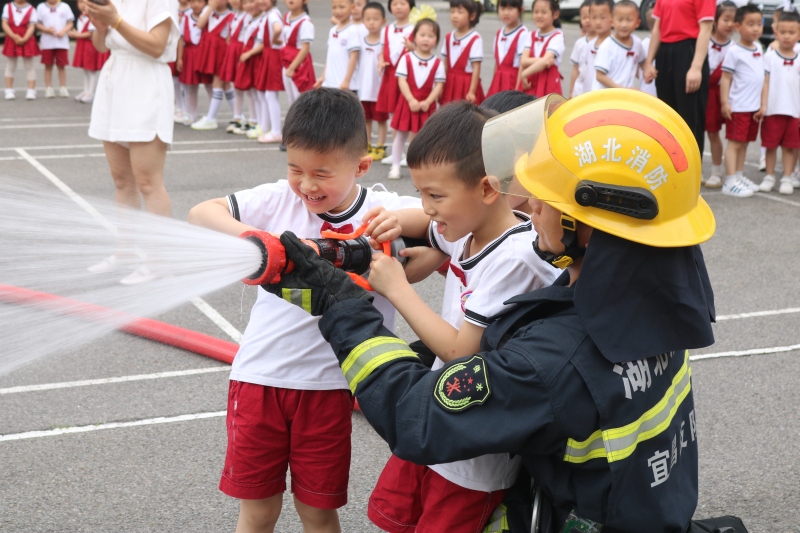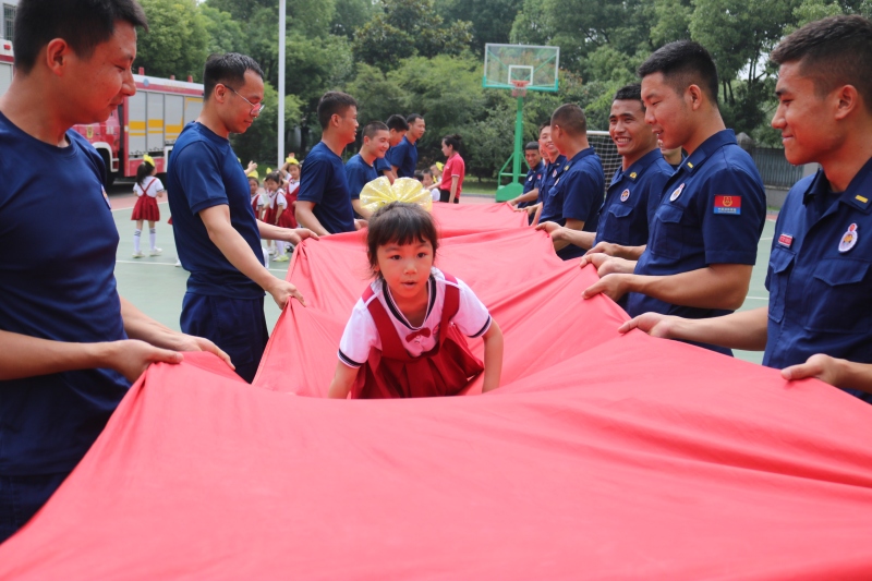“哇!好整齐啊!太棒了!消防员叔叔叠出来的被子方方正正,像豆腐块。”孩子们惊叹道,于是也都有模有样的动手学起来。消防救援人员还向小朋友们展示了挂钩梯上四楼、绳索攀爬、消防车出水等项目,小朋友们都报以热烈的掌声,幼儿园的师生也向消防救援人员献上了自排自演的舞蹈表演,并共同开展了勇往直前等小游戏。