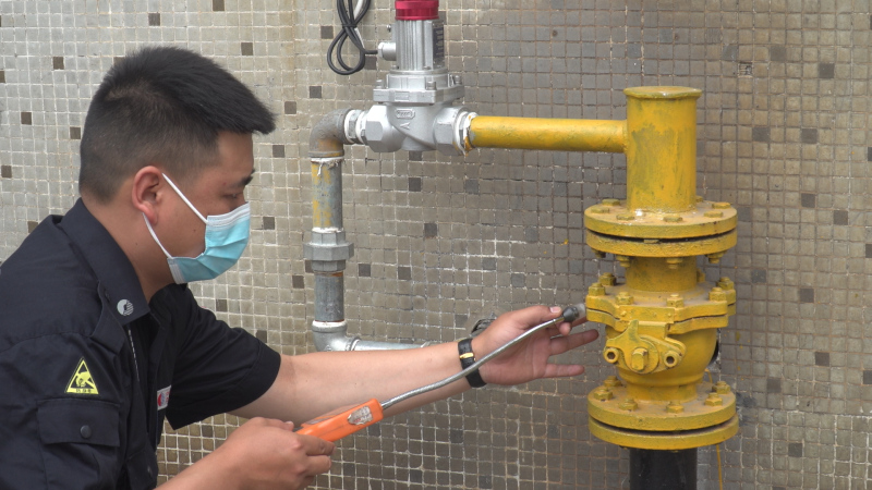 当阳中燃组织14人专项检查小组,分别对市一中、二中、职教中心进行了燃气安全大排查,针对燃气灶具、热水炉、燃气管道、调压计量设施、可燃气体报警器等进行了仔细排查,重点检查了连接软管是否安装规范、各个阀门是否能够正常使用、户内管道与电器是否有足够的安全距离、燃气报警器是否有效可靠等问题,不放过任何细小的环节,对危及管线安全的各类隐患及时排查、当场处理。另外还对管网末端燃气加臭浓度、供气压力进行达标检测,使用遥距激光甲烷检测仪对架空管道进行泄漏检测,使用可燃气体检漏仪对管道三通、接头处逐一进行检测排查,并向用气单位现场宣传燃气安全知识,发放安全用气须知,张贴燃气安全警示牌。