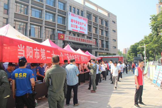 本网讯(杨璐、蒋超)今年是第21个全国安全生产月,今年的活动主题为“遵守安全生产法 当好第一责任人”。6月16日,当阳市政府办公室、市安委会办公室组织市应急管理局、市住建局、市交通运输局等28个部门在广家洲社区门前广场举行2022年“安全生产月”宣传咨询日活动。