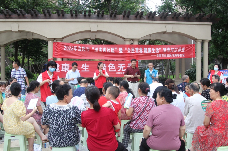 本网讯(陈娅)6月22日,市司法局到禁毒联系点坝陵桥社区开展“送法进社区”暨“全民禁毒 健康生活”法治宣传活动。