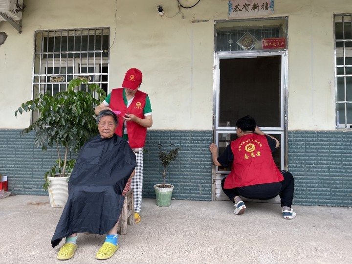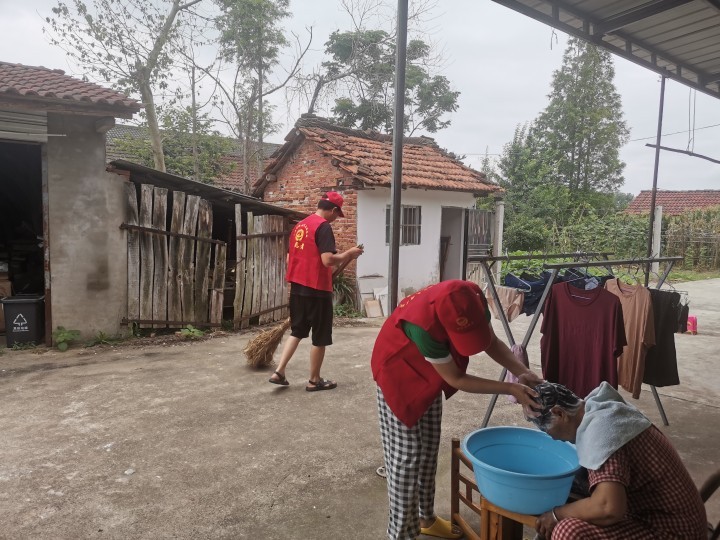 楚湖村志愿者赵勇康作为目前草埠湖镇最年轻的村干部,牺牲周末休息时间,同父母一起来到残疾老人庄友秀家中,与老人亲切交谈,详细了解了老人身体和生活状况,鼓励庄奶奶保持积极乐观的心态,并仔细叮嘱老人炎热天气要注意防暑。赵康勇还为行动不便的老人洗头发、剪头发,积极帮老人收拾屋子,清扫院中杂草和杂物,为老人营造了一个干净整洁的居住环境。