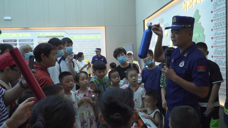 活动中,消防员通过播放视频、动画、图片等形式,结合实际案例讲解日常消防安全、火灾预防、家庭隐患排查等消防安全知识,并在现场模拟了低楼层床单连结逃生方法和油锅起火等家庭常见火灾的扑救方法,并叮嘱家长们在家里要时刻注意用火、用电、用气安全。活动现场,两名消防员相互配合,耐心地向小朋友和家长们展示了灭火防护服、液压破拆工具、水域救援装备等各种消防装备和器材,让大家“零距离”接触消防救援器材。