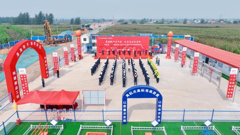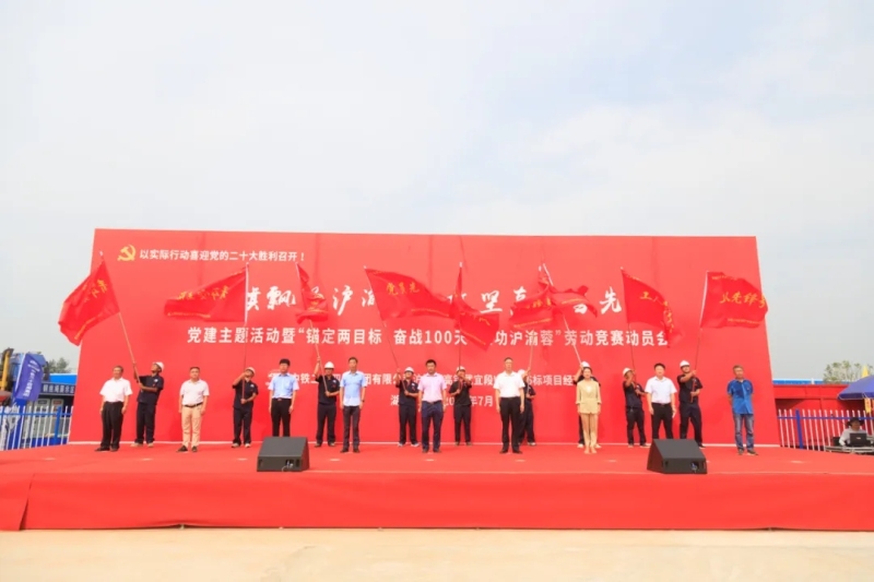 与会嘉宾、项目部负责人为“党员先锋队”“工人先锋号”“红铁连青年突击队”授旗;党员先锋队代表作表态发言;项目经理钱建忠带领全体参建职工进行集体宣誓;项目党工委书记吴强国宣读了党建主题活动和劳动竞赛活动文件。