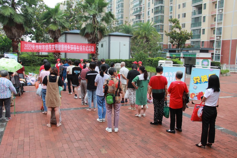 本次活动通过设立环保宣传展板、发放垃圾分类宣传单等方式,向现场群众宣传绿色环保、垃圾分类等相关知识。现场共吸引200余名居民群众前来参加,居民们纷纷将旧衣服、旧纸箱、塑料瓶等物品带到活动现场进行有序兑换。