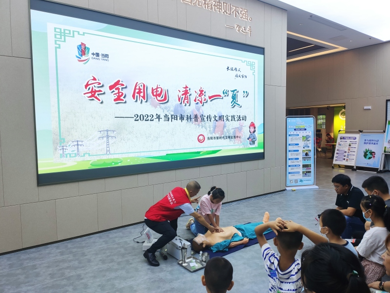 本网讯(徐家睿、郭静琦)“现场哪位小朋友想上来体验一下心肺复苏,看看能否施救成功?”7月20日,国网当阳市供电公司在市新时代文明实践中心开展“安全用电 清凉一夏”科普宣传文明实践活动,供电公司安全宣讲员给社区居民带来一场沉浸式安全用电大讲堂。