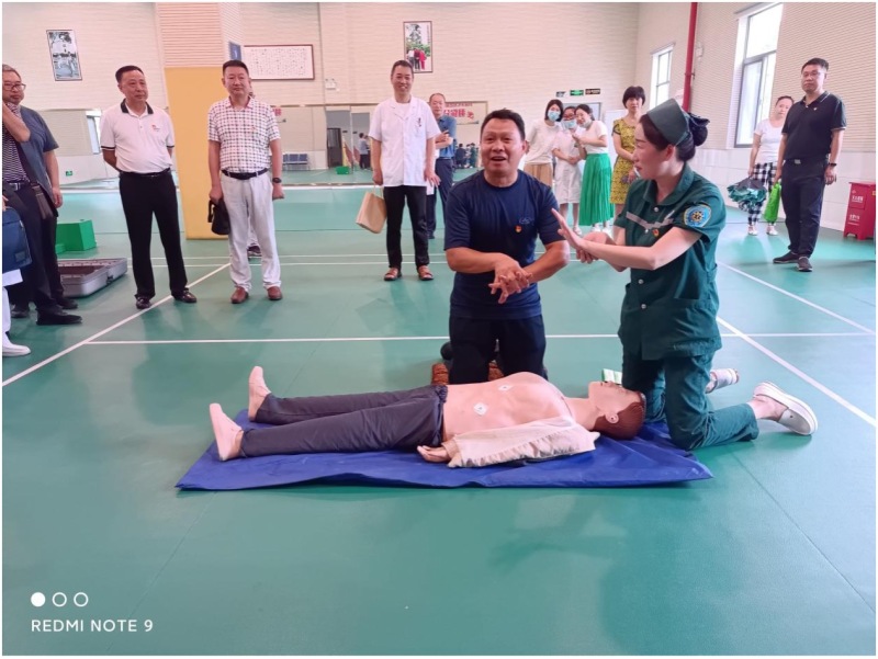 活动中,党员们实地参观了军休活动中心羽毛球馆、陈列室、报告厅、门球场等场地的建设和使用情况;随后,在三楼报告厅重温入党誓词,观看《心系国防 服务军休》电视专题片,聆听市人民医院医护人员宣讲日常用药常识;最后,党员们来到一楼羽毛球馆观看医护人员对人体模型进行人工复苏现场操作。
