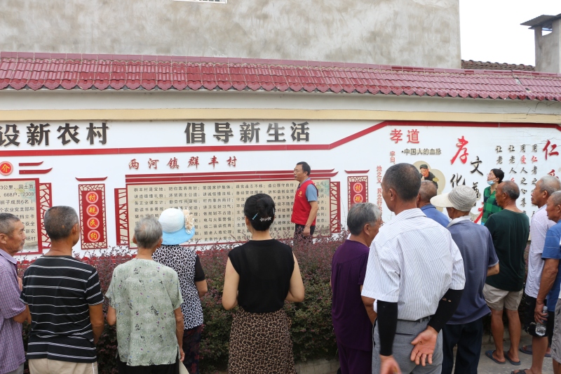 活动现场,志愿者围绕《宜昌市文明行为促进条例》第十七条“维护乡风文明”展开宣教活动。志愿者用通俗易懂的语言从爱护村容村貌、日常用语礼仪、家庭礼仪、移风易俗等方面进行了讲解,生动演绎了实际生活中的文明行为,并带领群众到群丰村文化墙处重温村规民约,赢得了在场群众的阵阵掌声。
