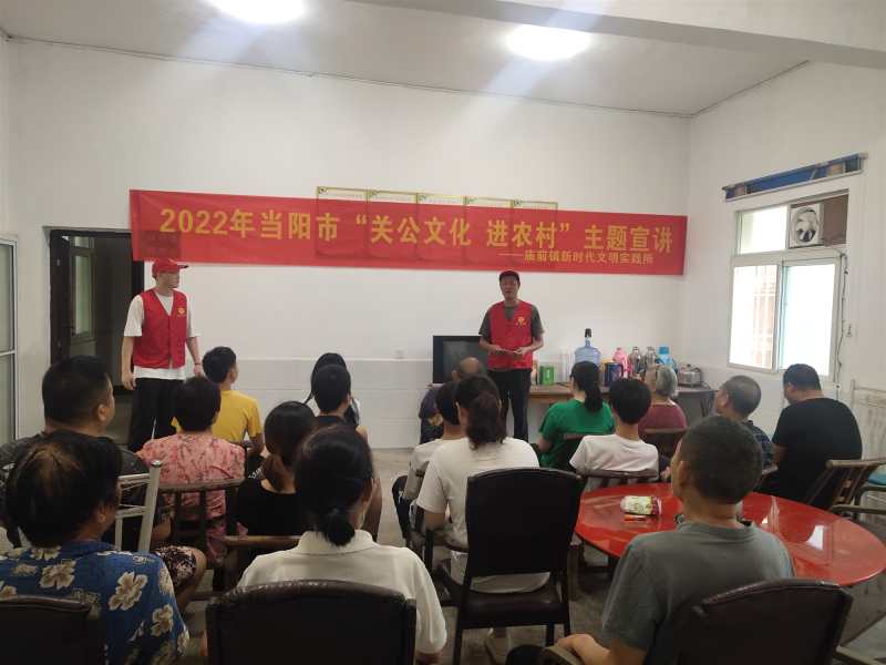 “大家知道我们庙前镇为什么取名为庙前嘛......”活动中,宣讲志愿者从庙前镇名字的历史渊源讲起,用生动的语言、鲜活的事例、饱满的情感讲述了关公屯兵石马槽、青龙偃月刀、扬旗岩、插旗岭、关公红脸等传说故事,一个多小时的宣讲一气呵成、干货满满,引发村民强烈共鸣。活动最后还开展了交流互动,邀请村民们分享自己了解的关公文化小故事。