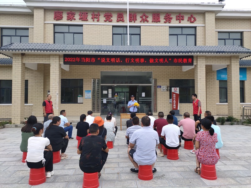 线上,廖家垭村新时代文明实践站开展文明学习答题,每一道测试题都深入居民具体生活,切实提升居民文明素质和文明程度。线下,志愿者以《宜昌市文明行为促进条例》、《当阳“十不见”》和《廖家垭村村民民约》为重点,结合现实生活中的典型人物、典型事例,重点讲解了社会礼仪、生活礼仪等方面内容,为广大居民送上了一堂堂涉及社会现实、贴近百姓生活的文明礼仪大餐,引导广大干群从小事做起,注重行为举止,坚决告别不守交通规则、铺张浪费等不文明行为。