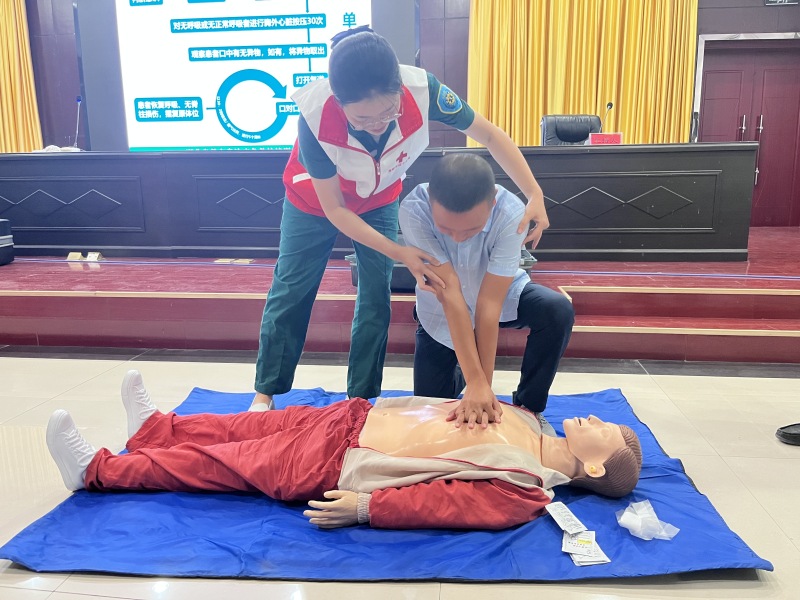 本网讯(尚雪芹)8月11日,庙前镇邀请市红十字会志愿者开展应急救护培训活动。