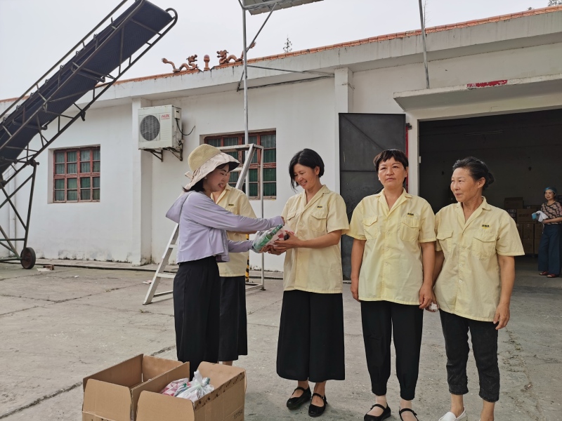 活动中,半月镇工会联合会主任为辖区瑞定包装、华尔食品等企业车间的一线职工,送去洗发水、沐浴露、香皂、毛巾、花露水等防暑降温慰问品50份,向在高温下辛勤工作的一线职工表示衷心感谢和亲切慰问,叮嘱大家在坚守岗位的同时要注重安全生产和防暑降温,时刻注意身体健康。