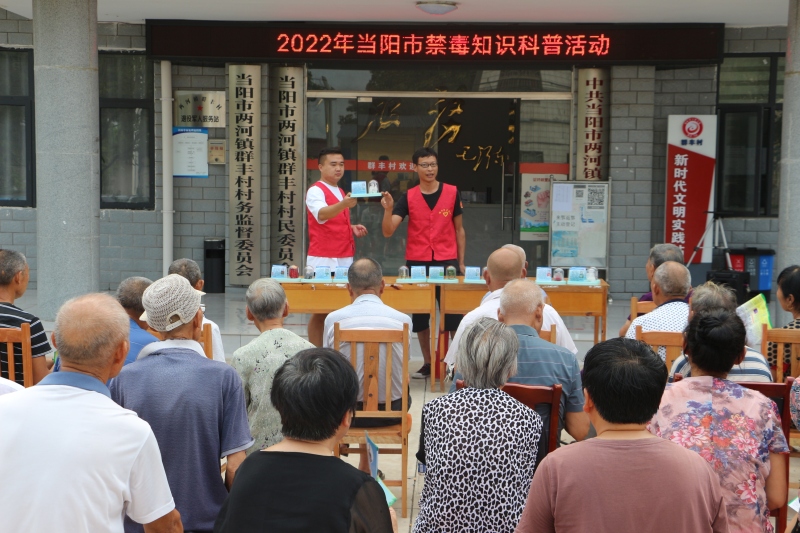 本网讯 (卢越、文吉玉)8月17日,两河镇群丰村新时代文明实践站开展了“珍爱生命 远离毒品”禁毒科普活动。