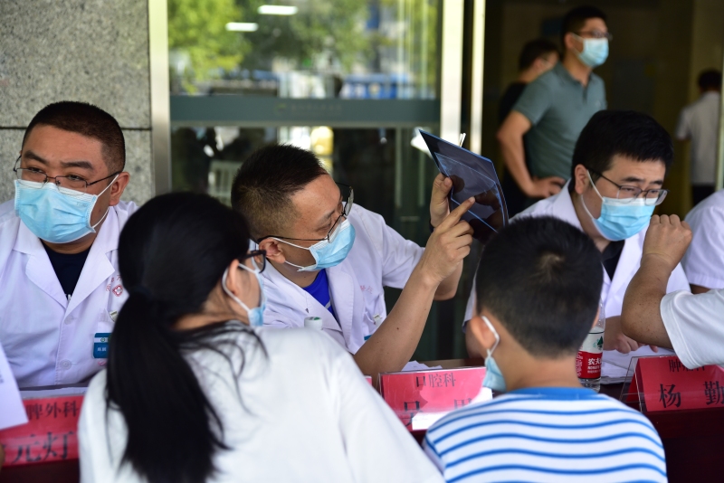义诊现场,前来就诊的患者络绎不绝,在志愿者的引导下填写就诊单,领取免费专家号有序候诊,专家们热情地接待每一位群众,为他们把脉问诊。医务人员免费为群众测量血压、血糖,进行超声、心电图等检查,并且详细解答了群众疑问,普及预防保健、健康饮食、用药等知识,并针对群众身体情况给出了健康提醒和合理化建议。