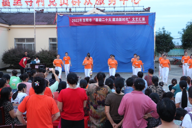 本网讯 (卢越、肖蓉)8月21日,两河镇新时代文明实践所在富里寺村开展了“喜迎二十大 建功新时代”文艺汇演活动,共有4支文艺文化志愿服务队参与。