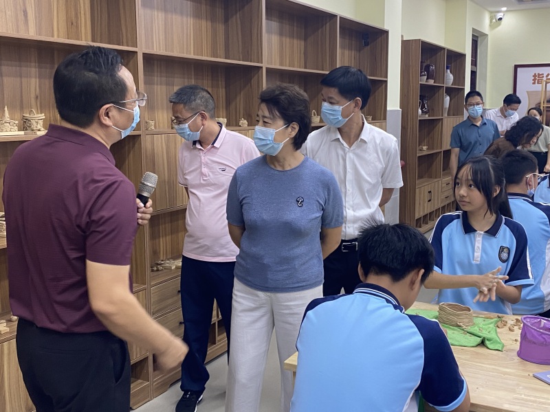 在玉阳中学熊家山校区,调研组参观了学校书画教室、历史探究室、创客教室等多功能教室,实地调研了解场地设施建设、师资配置管理、教学运行秩序等方面情况。在落实“双减”政策中,玉阳中学强化手机、睡眠、作业、体质、读物管理,提高作业管理水平,源头治理办班补课和滥订资料,强化师德师风建设,形成了风清气正的教风学风。