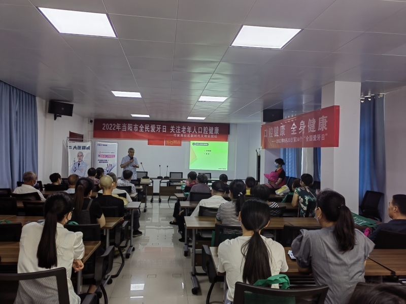 今年9月20日是第34个全民爱牙日,熊家山社区、付家岗社区、广家洲社区等社区新时代文明时代站联合德众口腔医院开展了“2022年当阳市全民爱牙日 关注老年人口腔健康”系列活动。活动邀请口腔医院专家向老年人详细介绍了口腔健康的日常维护方法、口腔疾病的预防和诊疗常识、口腔诊疗的常见误区,耐心细致地为25名老人进行口腔义诊,教育市民要注意自身健康,养成健康生活的习惯。本次活动通过线上直播的方式进行,让无法出门的老年人在家也能享受到良好的服务。