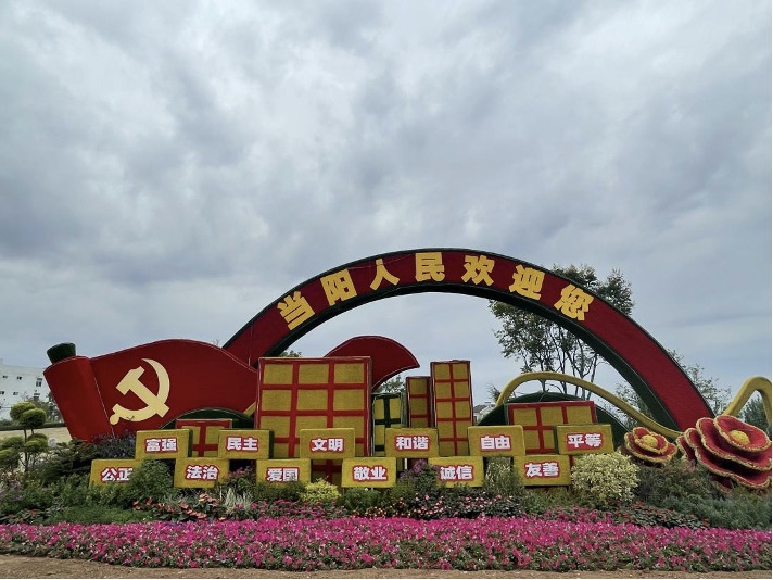 本网讯(徐晓霞)近日,为打造靓丽美观的城区绿化景观效果,迎接国庆节到来,市住建局积极组织园林中心开展增花添彩喜迎国庆专项工作。在当阳西高速出口、G348玉泉路平交口、临沮公园等关键位置设置主题花境,尽显最美当阳;在临沮公园、长坂坡公园、体育公园、桥头绿地等重要节点设置主题扎景,节日氛围营造再跃升;在长坂路、子龙路、一桥等重要道路护栏花箱设置立体亮化种植,见缝插绿美化当阳街头。