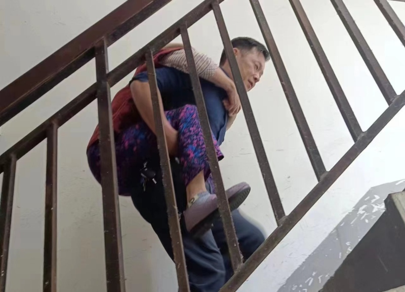本网讯(冯涛、张岩卉)“今天要不是唐经理,我还真是没办法上6楼”,盛泰华庭小区业主赵女士感慨道。9月22日,因玉阳片区高压线路故障,盛泰华庭小区突然停电,电梯无法正常使用,赵女士坐在轮椅上的母亲难以上楼回家。苦恼时,正在检查小区安全的唐松经理路过,问清情况后,当了30年兵的唐松二话不说,背起赵女士母亲就直奔6楼。此事刚好被一起上楼的业主拍照传到业主群,大家纷纷点赞叫好。
