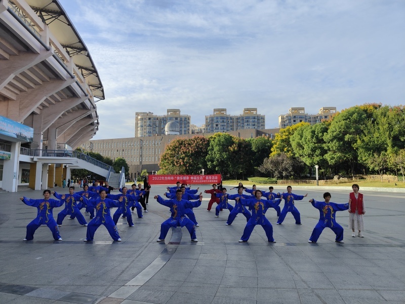 9月23日,广家洲社区新时代文明实践站在体育场前健身广场线上线下同步开展“快乐健身,幸福生活”健身活动。活动现场,太极拳爱好者们精神抖擞,伴随着舒缓的音乐,动作时而如行云流水,时而刚劲有力,一柔一刚中演绎出太极的精妙,一招一式中舞动出太极的魅力,展示了太极的精髓和习练者良好的精神风貌。此次活动还通过线上直播的方式向群众推广,推动了太极拳活动蓬勃开展,提升社区居民的健康水平,增进了邻里之间感情,推动幸福和谐社区建设,更好满足居民对美好生活的需要。