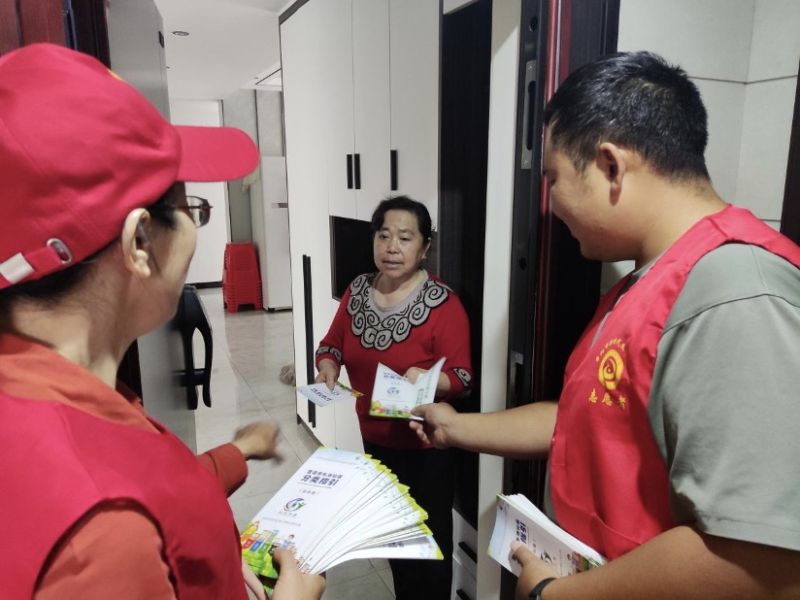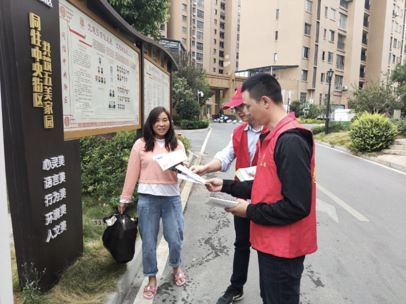 上午9点,市农业农村局十余名单位职工身着志愿者服装,来到包保责任小区开展生活垃圾分类宣传工作,入户发放讲解《宜昌市生活垃圾分类指导手册(2020 版)》、《宜昌市生活垃圾分类指引居民篇折页(2020版)手册各100份次;在中央街区小区垃圾垃圾分类亭周边进行巡逻以及宣传,对来投放垃圾的居民进行督导。