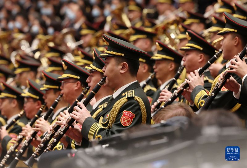 10月16日,中国共产党第二十次全国代表大会在北京人民大会堂隆重开幕。这是军乐团在演奏。