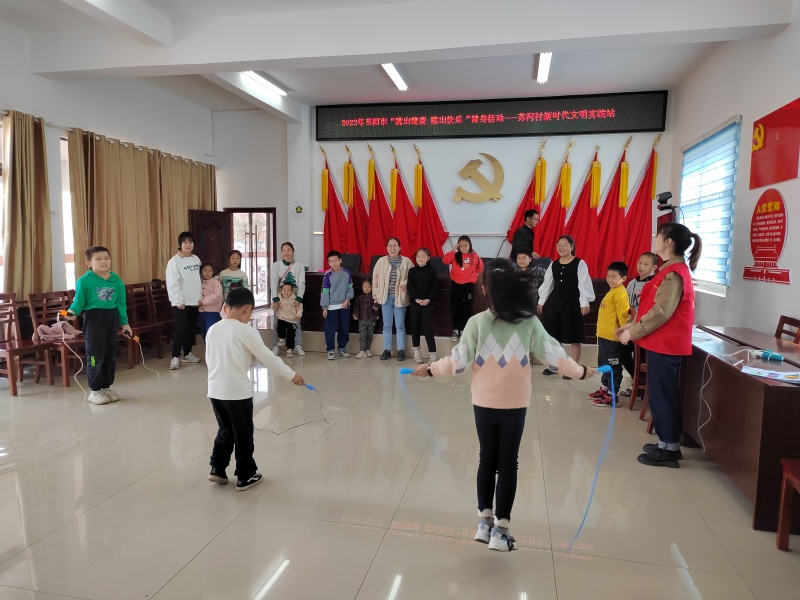11月6日,在苏河村新时代文明实践站党员活动室,该村组织辖区青少年开展了 “跳出健康,跳出快乐”健身娱乐活动。