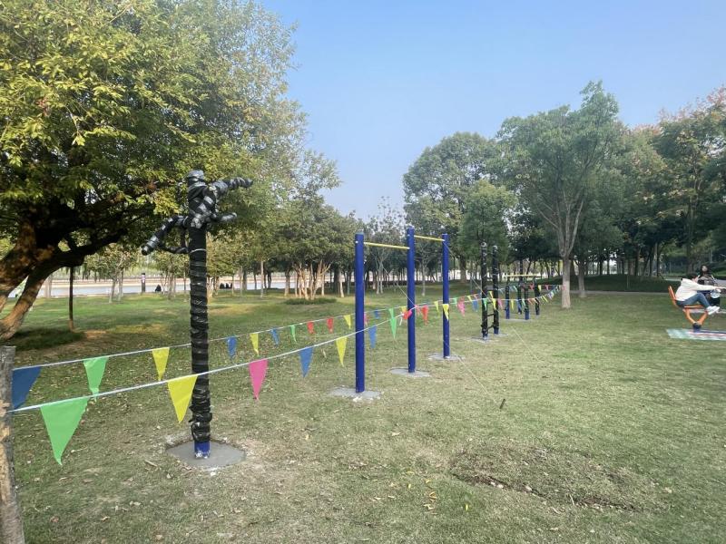 本网讯(吴金柳、徐晓霞)11月10日,市住建局组织园林中心在休闲健身热门打卡地——临沮公园南北两岸新增了双杠、单杠、上肢牵引器等12组健身器材。