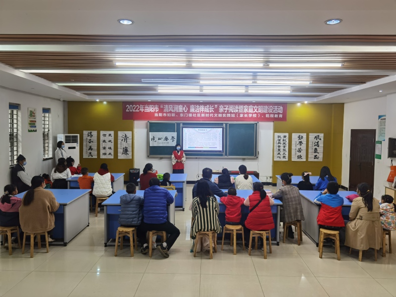 本网讯(彭魏)为进一步弘扬清正廉洁好家风,助力清廉当阳建设,11月20日,市妇联、东门楼社区家长学校组织开展“清风润童心 廉洁伴成长”亲子阅读暨家庭文明建设活动。